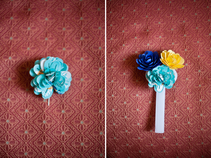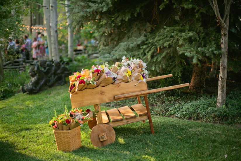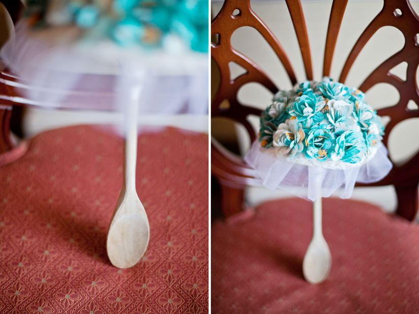 Instead of flowers, Morgan made paper flowers from General Mills flour bags, the stem of the bouquet was a wooden mixing spoon! Food was very important, so Sven and Morgan had their wedding at a steak house. Instead of a champagne toast, they did a milk and cookie dunk!